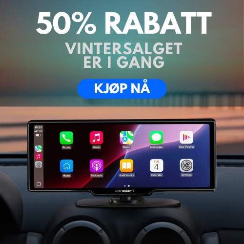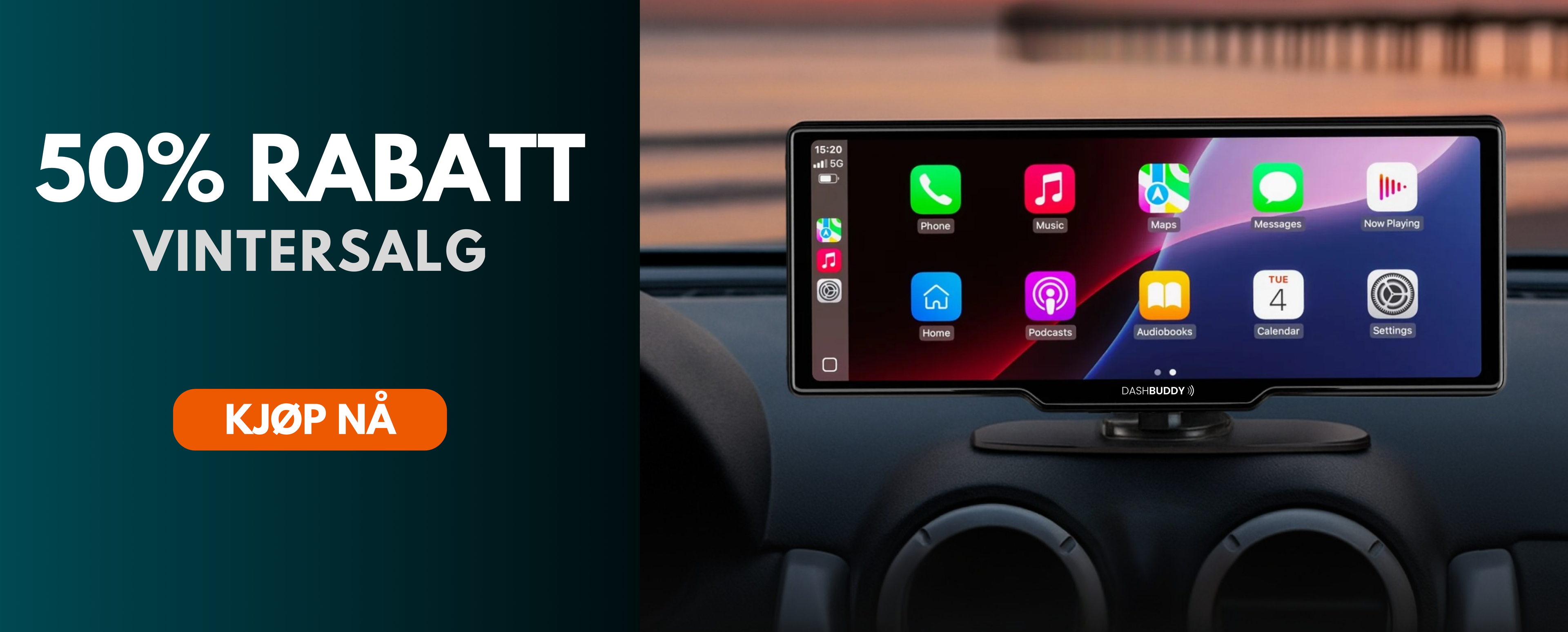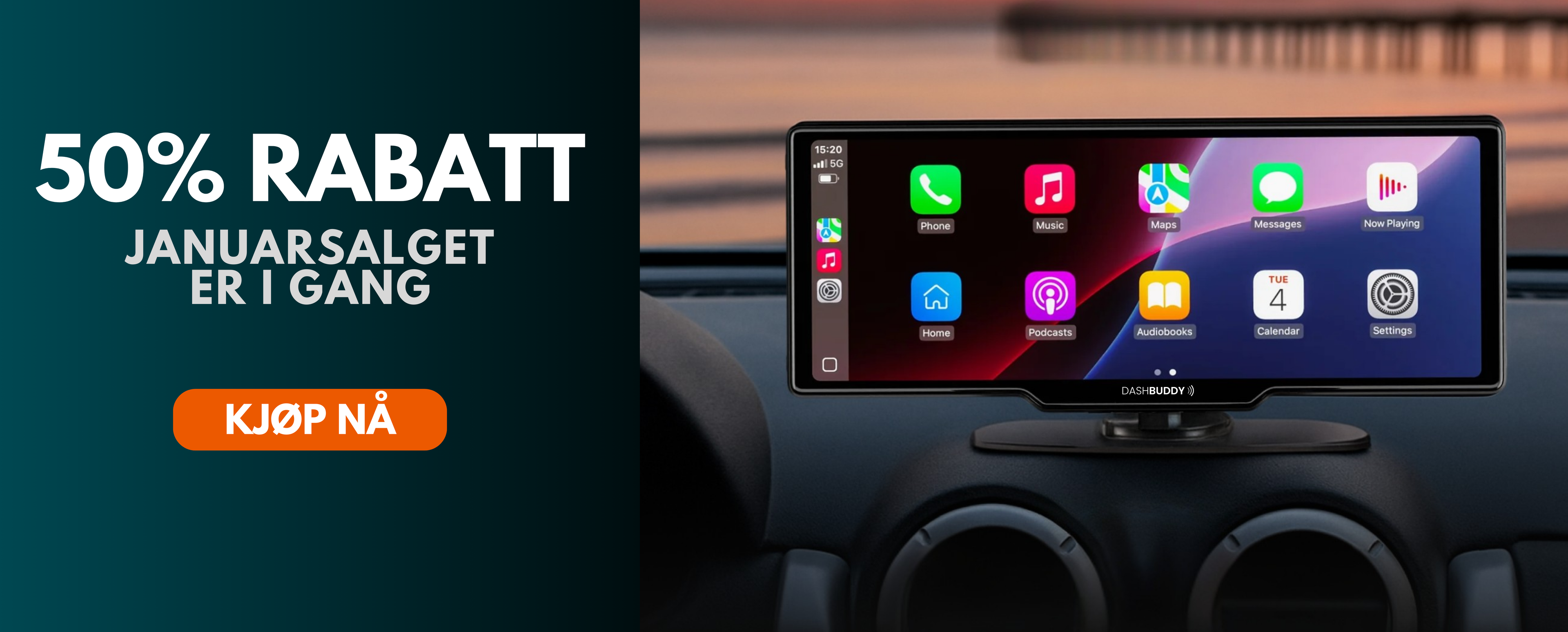 DashBuddy - Den ultimate løsningen for alle dine CarPlay- og Android Auto-behov. Nå kan du kvitte deg med kostbare installasjoner og ønske velkommen enkel lydglede takket være en problemfri oppsett. For å bruke fullverdig CarPlay mens du er på farten, kobler du det enkelt til sigarettennerporten.
